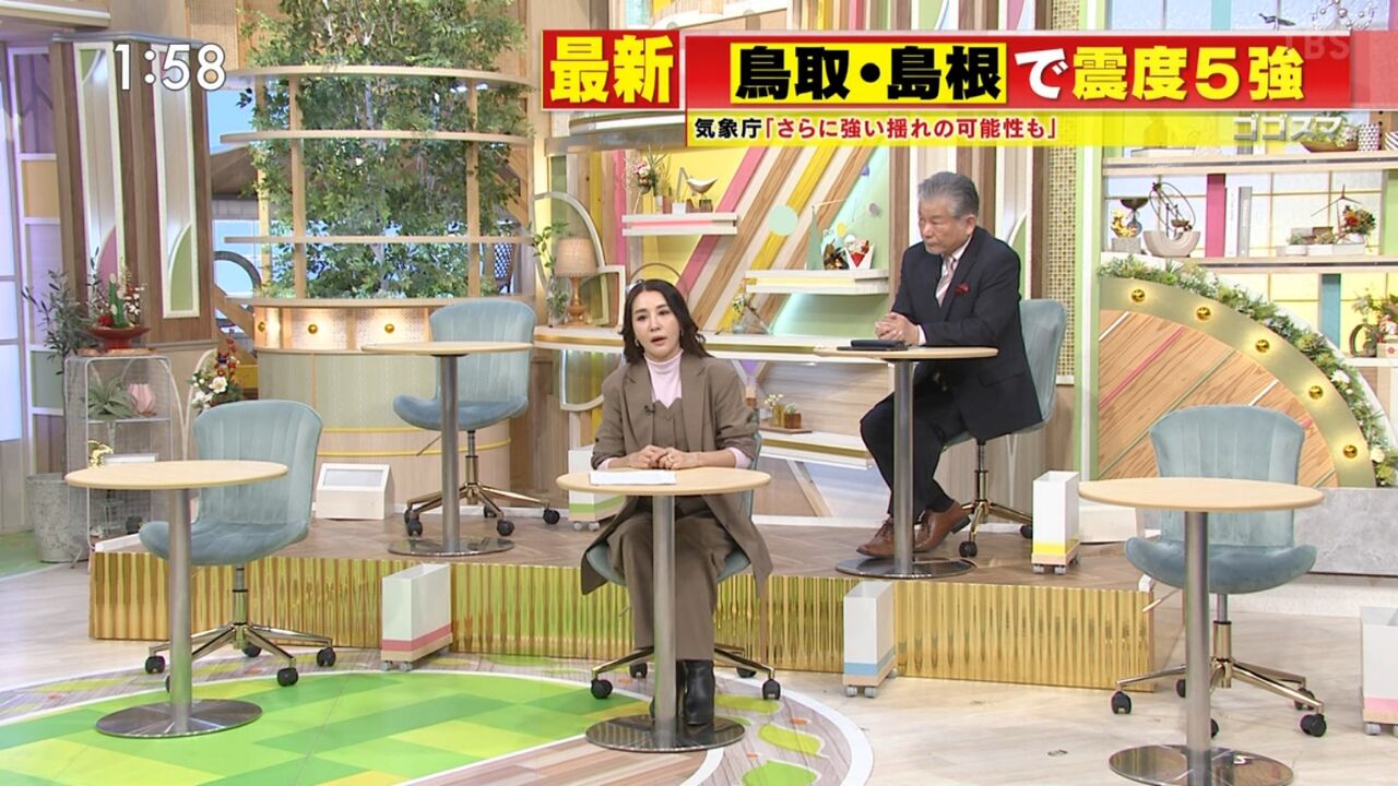 6日午前10時に鳥取・島根で発生した地震の影響で新幹線が止まったためで、出演予定の元衆院議員の金子恵美氏、弁護士の菊地幸夫氏、お笑い芸人の岡田圭右の席が空いた状態でスタートをなった。